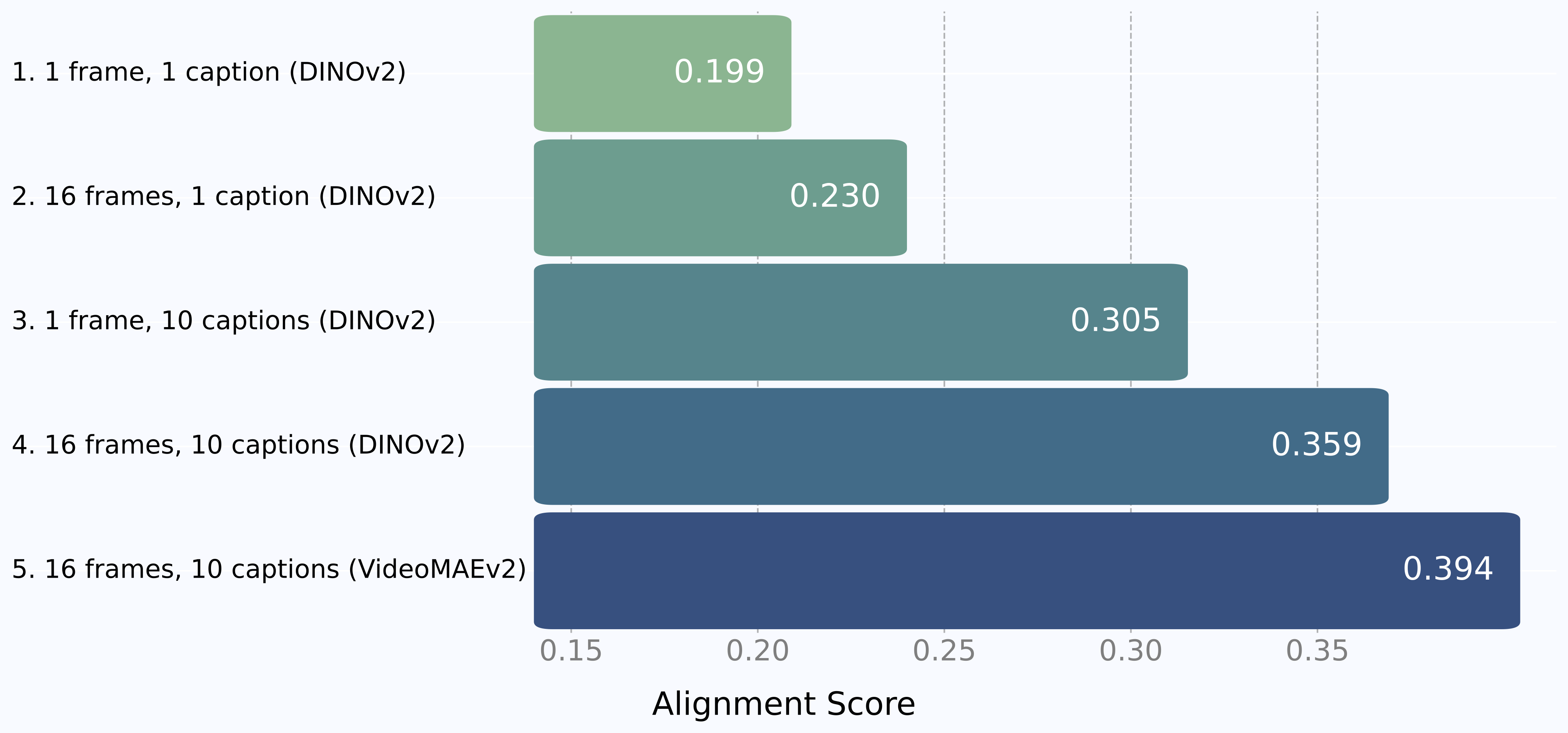 Extending the Platonic Representation Hypothesis to dynamic inputs like videos and multi-caption text dramatically improves their alignment.